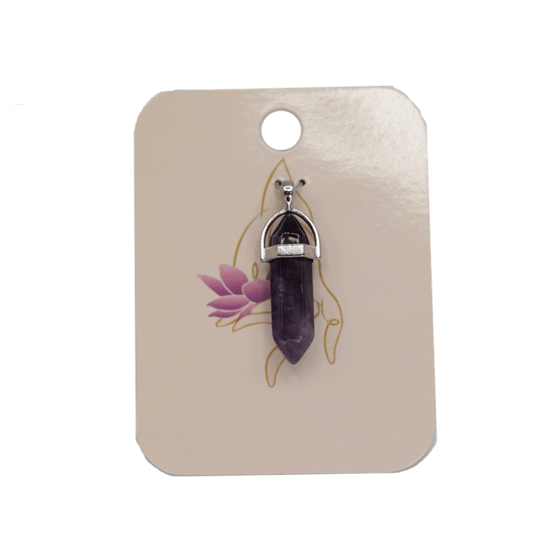 Amethist is een zeer krachtige en beschermende steen met een zeer spirituele vibratie. Het beschermt tegen psychische aanvallen en zet energie om in liefde. Als natuurlijk kalmerend middel blokkeert amethist geopathische belasting en negatieve energieën in de omgeving. Zijn sereniteit bevordert hogere bewustzijnstoestanden en meditatie. Amethist heeft grote genezende en reinigende krachten en bevordert spiritueel bewustzijn. Vroeger werd het gedragen om dronkenschap te voorkomen vanwege zijn ontnuchterende effect. Het overwint verslavingen en alle mogelijke blokkades. Amethist kalmeert of stimuleert de geest. Als u mediteert, wendt het gedachten af van het wereldse naar rust en dieper inzicht. Geestelijk zorgt het voor meer concentratie en een betere beheersing van uw vaardigheden. Het bevordert de assimilatie van nieuwe ideeën en verbindt oorzaak met gevolg. Deze steen draagt bij aan een besluitvormingsproces, bevordert het gezond verstand en spirituele inzichten en brengt besluiten en inzichten in praktijk. Deze hanger amethist punt werken geestelijk kalmerend en ondersteunen de overdracht van zenuwsignalen door de hersenen. Het komt van pas als slapeloosheid wordt veroorzaakt door een overactieve geest en beschermt tegen terugkerende nachtmerries. Amethist stimuleert het geheugen en verbetert de motivatie zodat u beter in staat bent realistische doelen te stellen. Amethist brengt hoog en laag met elkaar in evenwicht, verdrijft woede, angst en bezorgdheid, en door de droefheid en leed te verlichten helpt het om verlies te verwerken.