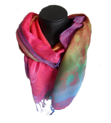 Mooie sjaal pauwenveer van viscose. Deze sjaal draag heerlijk zacht en soepel en heeft mooie motieven van een pauwenveer.