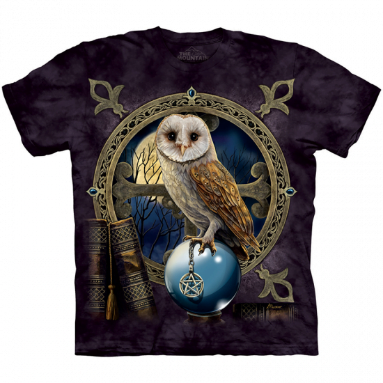 T-shirt met hoogwaardige print uil en pentagram. Dit shirt is gemaakt van 100% katoen en staan bekend om hun zacht aanvoelende eigenschappen. De print bestaat uit een kerkuil die steunt op een mooie bol waar een pentagram overheen hangt. Naast de uil zijn ook boeken zichtbaar in de punt en kan een mooie heldere nacht met volle maan achter hem waargenomen worden. De uil als symbool heeft verscheidene betekenissen. Zo geloofden de oude Egyptenaren dat het dier symbool stond voor de dood en nacht. Terwijl de oude Grieken en Romeinen juist de uil symboliseerde met wijsheid en kunst. Doordat op dit shirt ook boeken staan weergegeven wordt aangenomen dat in dit geval de kerkuil doelt op een heuse wijsheid. Daarnaast staat er op het shirt een pentagram dat een vijfpuntige ster is en één van de oudste symbolen ter wereld is, zeker ouder dan 4000 jaar. Het pentagram heeft net als de uil verschillende symbolische betekenissen, zo gebruikte de wiskundig geleerde Pythagoras dit symbool voor zijn leer maar wordt het ook geassocieerd maar occulte interesses. Bovendien wordt het symbool ook neergezet voor vrouwelijkheid en de planeet Venus. Het T-shirt met hoogwaardige print uil en pentagram heeft een gemarmerde grijs/zwarte achtergrond.