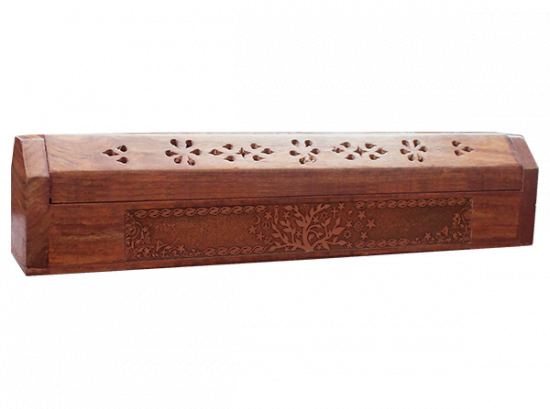 Deze wierookdoos tree of life is gemaakt van hout en geschikt voor het branden van wierookstokjes en wierookkegels. De kegels kun je branden in de twee metalen uitsparingen aan de binnenkant van de doos. Voor de wierookstokjes is aan weerskanten een gaatje gemaakt aan de zijkant van de doos. Daar kan het wierookstokje ingestoken worden. De doos zorgt ervoor dat de as van het stokje niet op de grond of tafel valt maar netjes in het doosje, hierdoor is het makkelijk weg te gooien. Bovendien kan de doos tijdens het branden gesloten worden, waardoor de rook mooi verspreid uit de gaatjes in de doos komt. Ook is de doos uitermate geschikt voor het opslaan van wierookstokjes of kegeltjes.