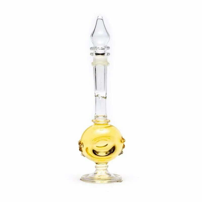 Aromatische parfumolie Roos in prachtig handgeblazen glazen flesje. Deze rijk geurende olie is fijn in gebruik en van de allerhoogste kwaliteit. Ideaal om cadeau te geven of te gebruiken om jezelf te verwennen. Het handgeblazen flesje is prachtig gevormd met lange nek en fijne sluiter. Een kleine druppel van deze olie is genoeg om het parfum de hele dag te ruiken. De parfumolie kan bijvoorbeeld worden aangebracht op plekken waar de geur makkelijk opgenomen kan worden door de huid, zoals in de nek of aan de binnenkant van de pols. De geuroliën van Song of India zijn gegarandeerd zuiver en vrij van alcohol.
