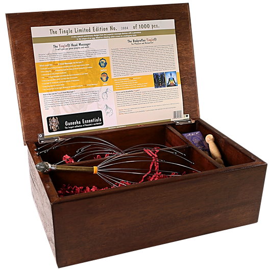 Deze luxe Prikkel body massage set betreft een ‘limited edition’ en bestaat uit een luxe houten kist met daarin:
